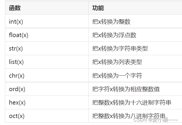 常用类型转换函数: