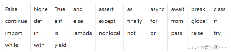 python中的33个关键字:
