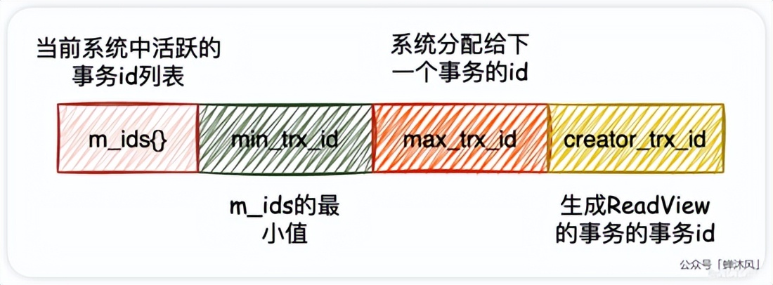为此,InnoDB的设计者提出了 ReadView 的概念,其中包含了4个比较重要的内容: