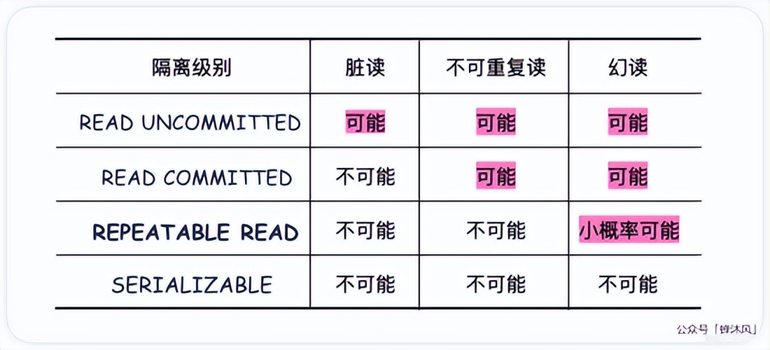 以上就是欣慰服饰最近收集整理的关于MySQL事务的隔离级别与MVCC1. 事务(transaction)的起源1.1. 事务的定义1.2. 哪些存储引擎支持事务2. MySQL的事务语法2.1. 自动提交2.2. 手动操作事务2.2.1. 开启事务2.2.2. 提交或回滚2.3. autocommit系统变量3. 事务并发执行导致的读问题3.1. 脏读3.2. 不可重复读3.3. 幻读4. 回答一些可能存在的问题5. SQL标准与4种隔离级别5.1. 为什么要设置隔离级别?5.2. 蹩脚的中文翻译5.3. 为什么单单给隔离性设置的全部内容,更多相关MySQL事务的隔离级别与MVCC1.内容请搜索靠谱客的其他文章。