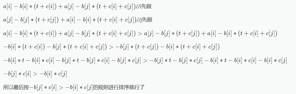 而本题有异曲同工之处:各个食材的价值会因完成的时间而不同,他们的顺序对答案造成了影响,所以同理我们也要对食材根据一些关键字进行排序。