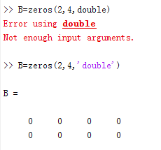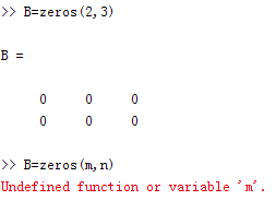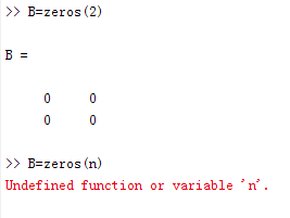 (1)B = zeros(n) 返回一个n x n的零矩阵.如果n不是一个标量,将抛出错误。