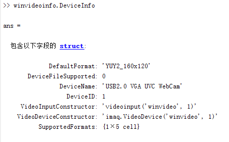 首先输入winvideoinfo = imaqhwinfo('winvideo')查询winvideo的具体参数