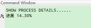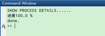 clc;clear; fprintf(1,'SHOW PROCESS DETAILS......n '); % 9个空格 for i=1:1000, pause(0.0000001); % 时间延迟 process=i/10; FIXS=fix(process); fprintf(1,'bbbbbbbbb进度%3d.%-2d%%',FIXS,fix((process-FIXS)*100)); % 打印的字符长度为9 end fprintf(1,'ndone.n');