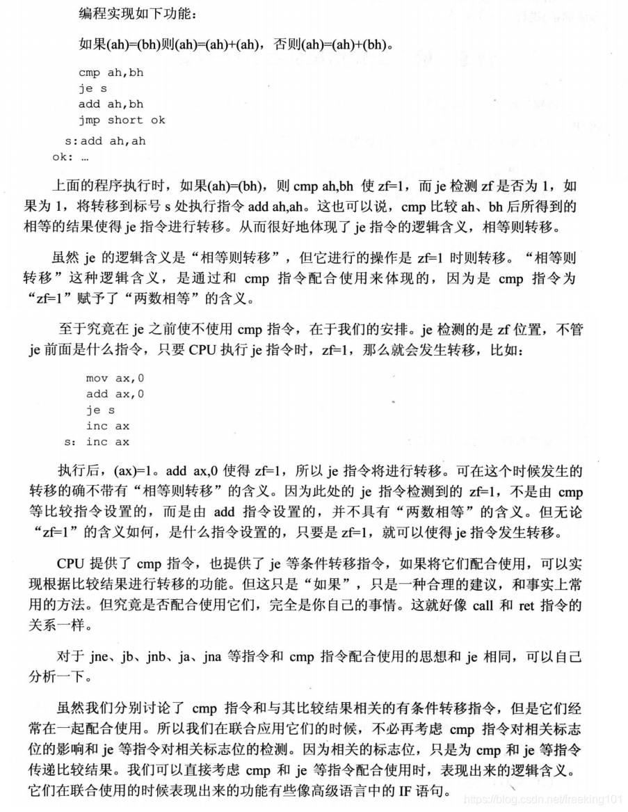 提示:传送指令不影响标志位。至于为什么是这样,我估计是因为更改标志位会费时间,CPU的资源很宝贵,而且转移指令的标志位并没有什么实际意义