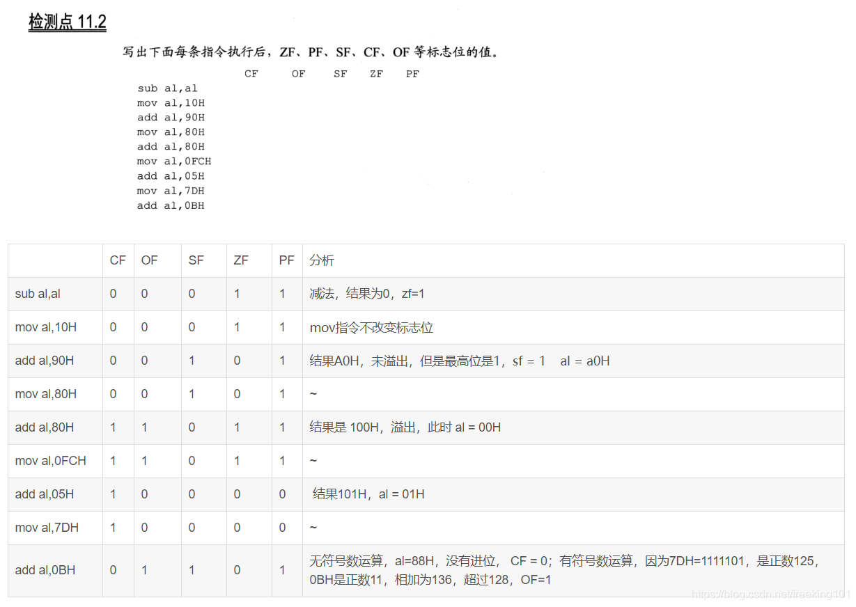 这题是对第十一章标志寄存器的更好理解。