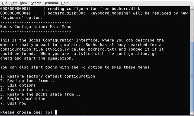由于咱们编译的是可调试的版本,所以会停下来,bochs等待咱们键入下一步的命令。见图: