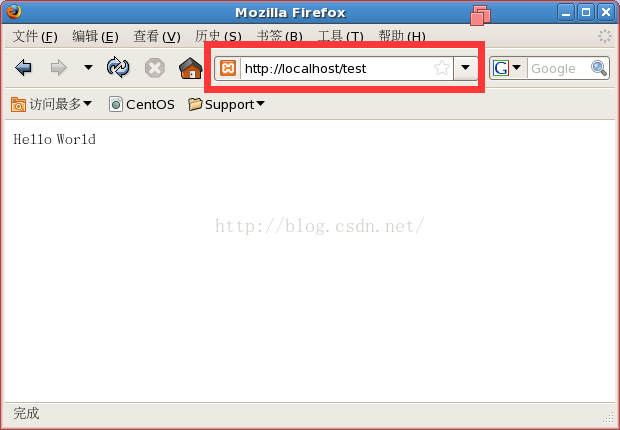 然后在浏览器输入:http://localhost/test即可看到Hello World字样。