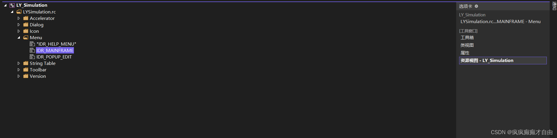 在资源视图中选择Menu中的IDR_MAINFRAME,双击它就会出现一个菜单栏界面,在里面可以加一些按钮,加了按钮以后还需要为相应的按钮添加事件处理程序,即当运行这个以后,点击按钮,程序会自动的去调用相应的函数来实现你点击的按钮的功能。