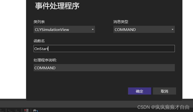 注意添加事件处理程序的时候,类列表要选择文件名+View这个类,否则后面会出错;