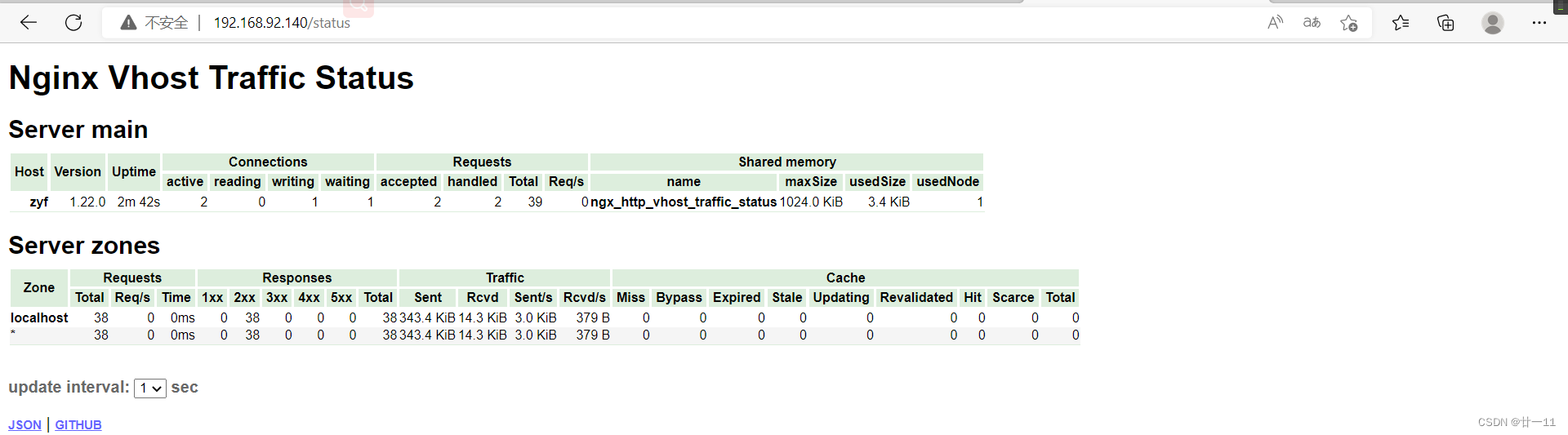 - nginx-module-vts:Nginx virtual host traffic status module,Nginx的监控模块,能够提供JSON格式的数据产出。
