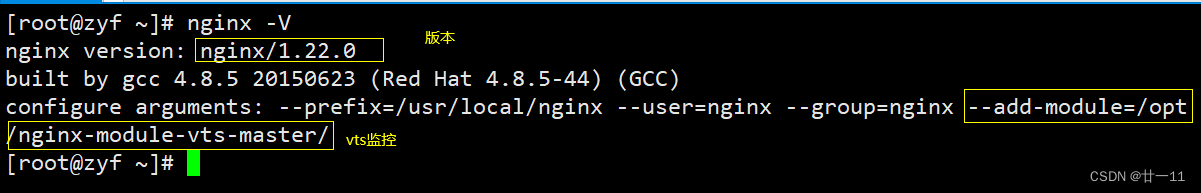./configure --prefix=/usr/local/nginx --user=nginx --group=nginx --add-module=/opt/nginx-module-vts-master/