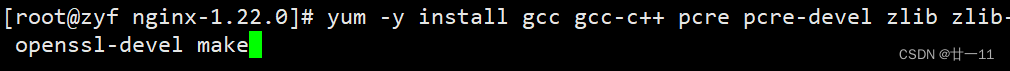 yum -y install gcc gcc-c++ pcre pcre-devel zlib zlib-devel openssl openssl-devel make