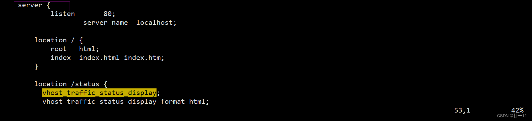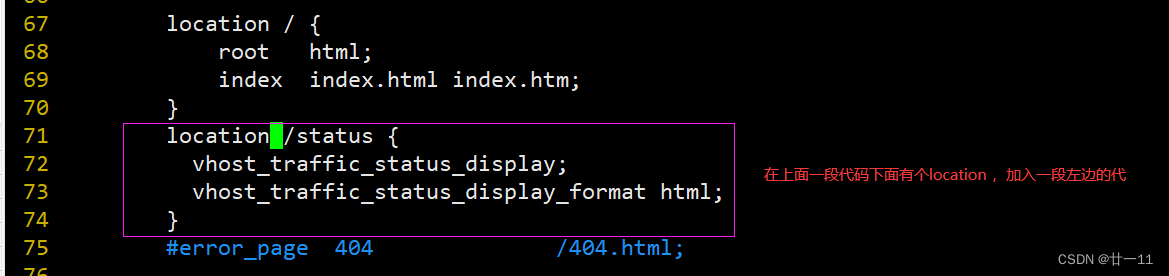 location /status 插入于server段代码中的 location / 下方