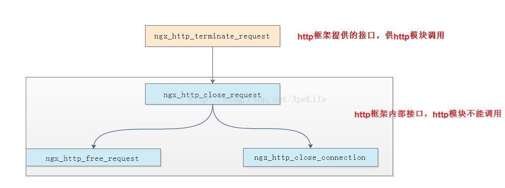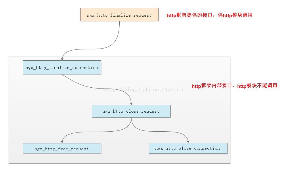 用于释放一个http请求的接口很多,但http框架只提供了2个释放请求的接口给http模块调用, ngx_http_finalize_request用于正常结束一个请求; 而ngx_http_terminate_request用于强制终止一个请求,不管当前是否还在读取来自客户端的数据。其它接口都是http框架内部使用的,http模块不能调用。下面看下正常结束一个http请求的函数调用关系: