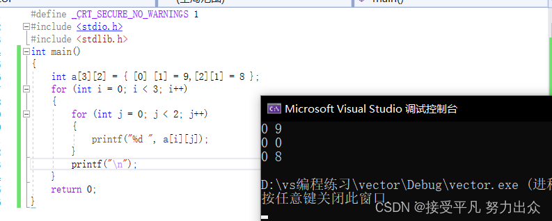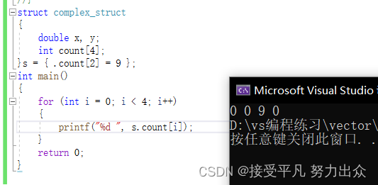 数组也可以像结构体一样初始化,未赋值的元素也是用0来初始化的,例如: