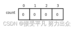数组类型的长度应该是用一个整数常量表达式来指定,数组中的元素通过下标来访问。例如前面定义的由4个int型元素组成的数组count图示如下: