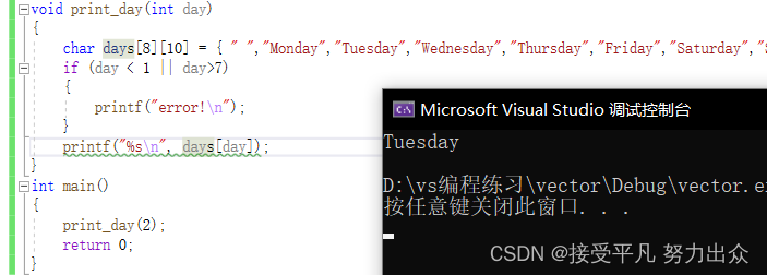 使用数组下标不能超出数组的长度范围,这一点在使用变量做数组下标时要注意。C编译器并不检查count[-1]或是count[100]这样的访问越界错误,编译时能顺利通过,所以属于运行时错误。但有时候这种错误很隐蔽,发生访问越界时程序可能并不会立即崩溃,而执行到后面某个正确的语句时却有可能突然崩溃,所以从一开始写代码就要小心避免出现这样的问题,事后依靠调试来解决问题的成本是很高的。