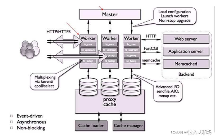 Nginx在启动后,会有一个master进程和多个worker进程。