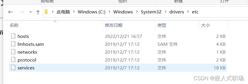 - 在 Windows 系统中,该文件的路径为C:WindowsSystem32driversetc