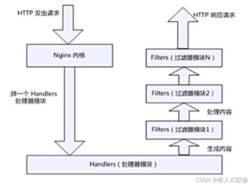 在解析配置文件时,nginx的每个模块都有可能去处理某个请求,但是同一个处理请求只能由一个模块来完成。