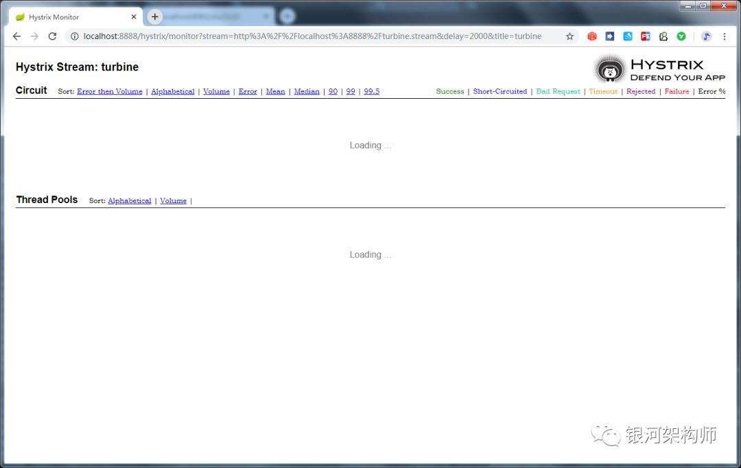 访问turbine监控界面http://localhost:8888/hystrix,可以看到,同样是loading。