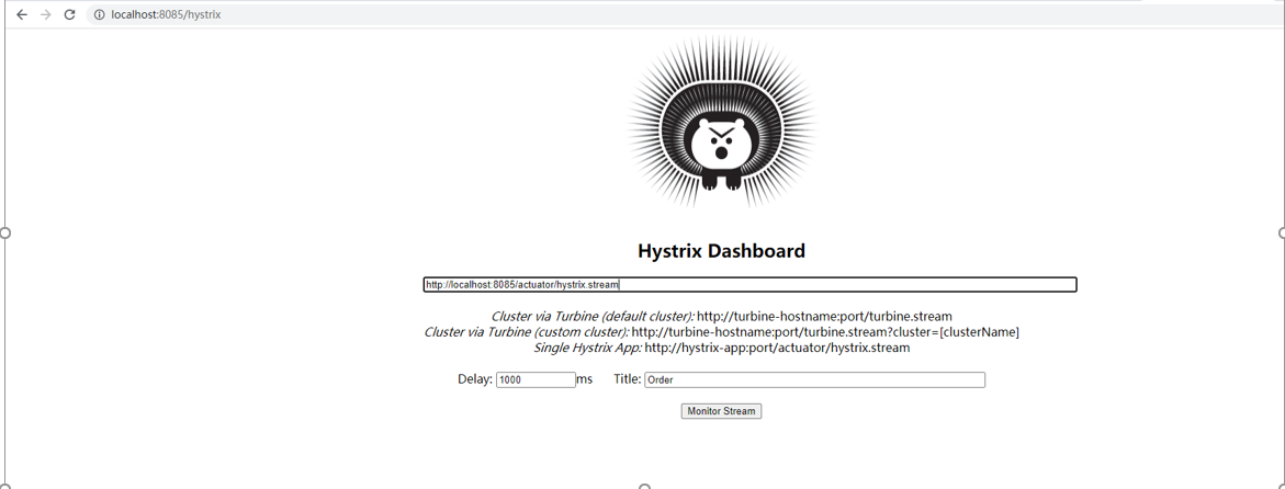 3.重启项目,浏览器输入http://localhost:8085/hystrix