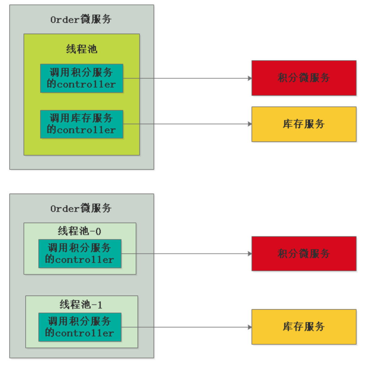 思路:不把鸡蛋放在一个篮子里,你有你的线程池,我有我的线程池,你的线程池满类和我也没关系,你挂了也和我也没关系。