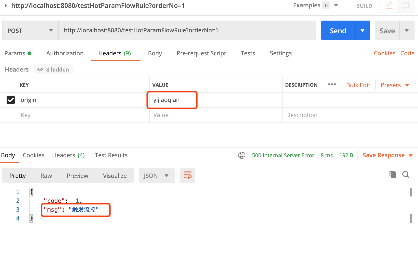 public OrderInfo testHotParamFlowRule(@RequestParam("orderNo") String orderNo) {