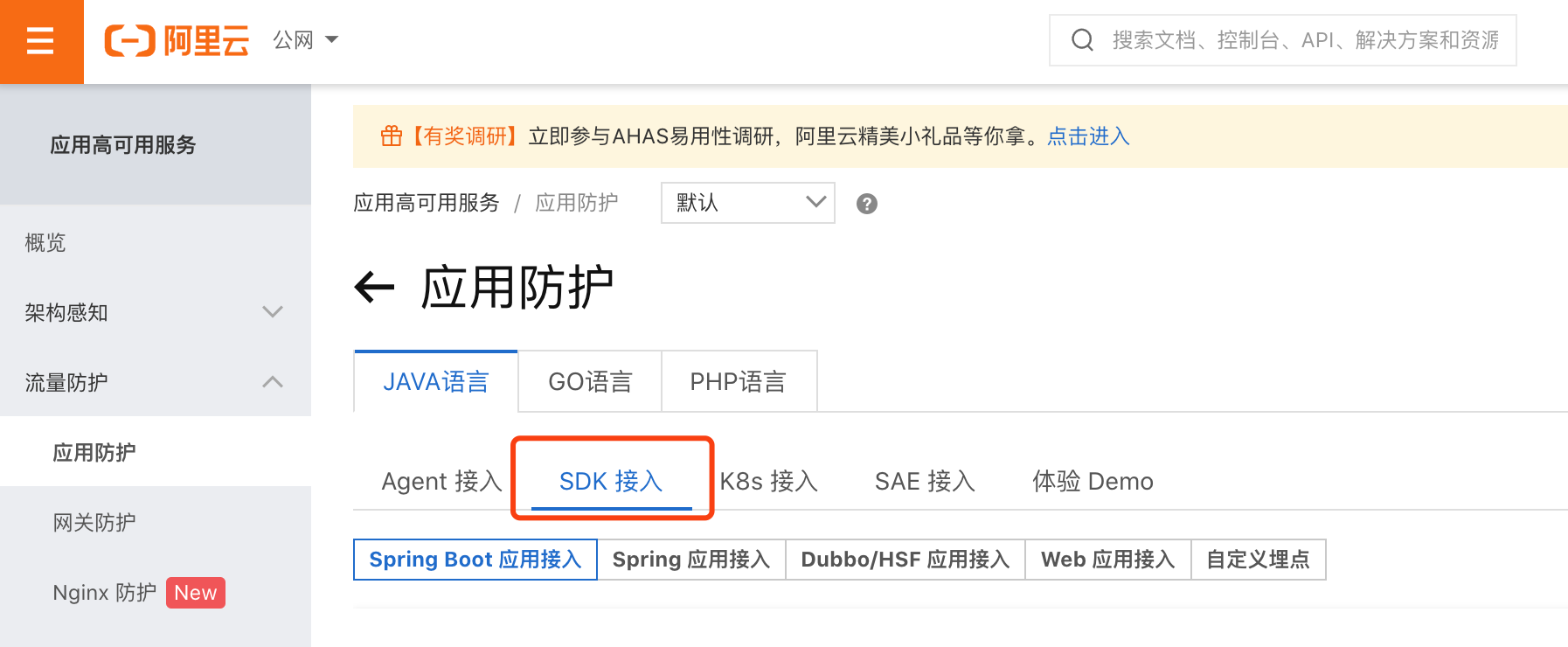 <artifactId>spring‐boot‐starter‐ahas‐sentinel‐client</artifactId> 4 <version>1.5.0</version>
