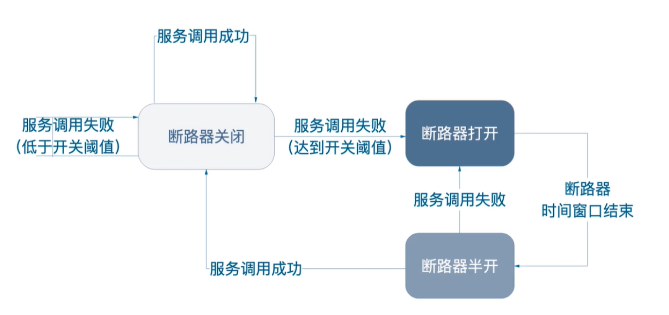 跳闸一段时间后(例如15秒),断路器会进入半开状态,这是一个瞬间态,此时允许一个请求调用该调的逻辑,如果成功,则断路器关闭,应用正常调用;如果调用依然不成功,断路器继续回到打开状态,过段时间再进入半开状态尝试——通过“跳闸”,应用可以保护自己,而且避免资源浪费;而通过半开的设计,可以实现应用的“自我修复”