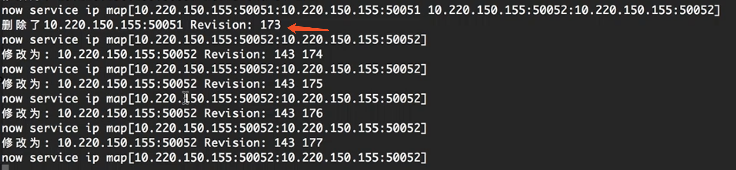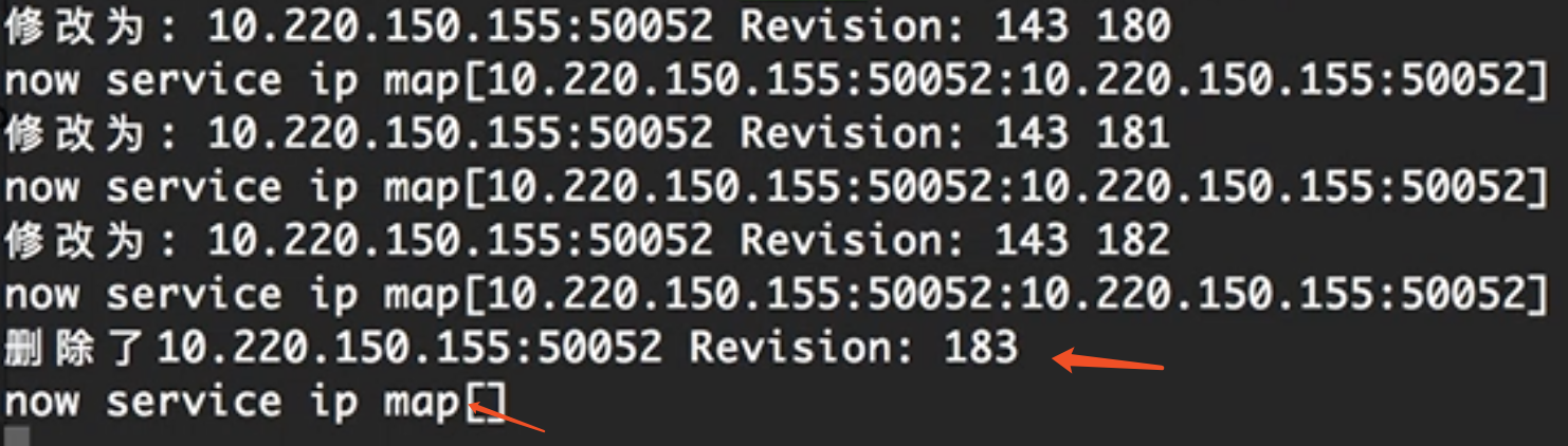 fmt.Println("删除了" + strings.TrimPrefix(string(event.Kv.Key),serviceName), "Revision:", event.Kv.ModRevision)