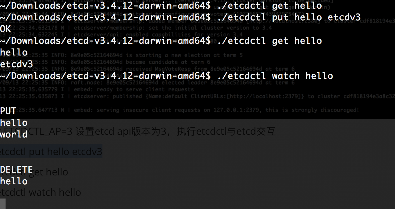 - ./etcdctl put hello etcdv3