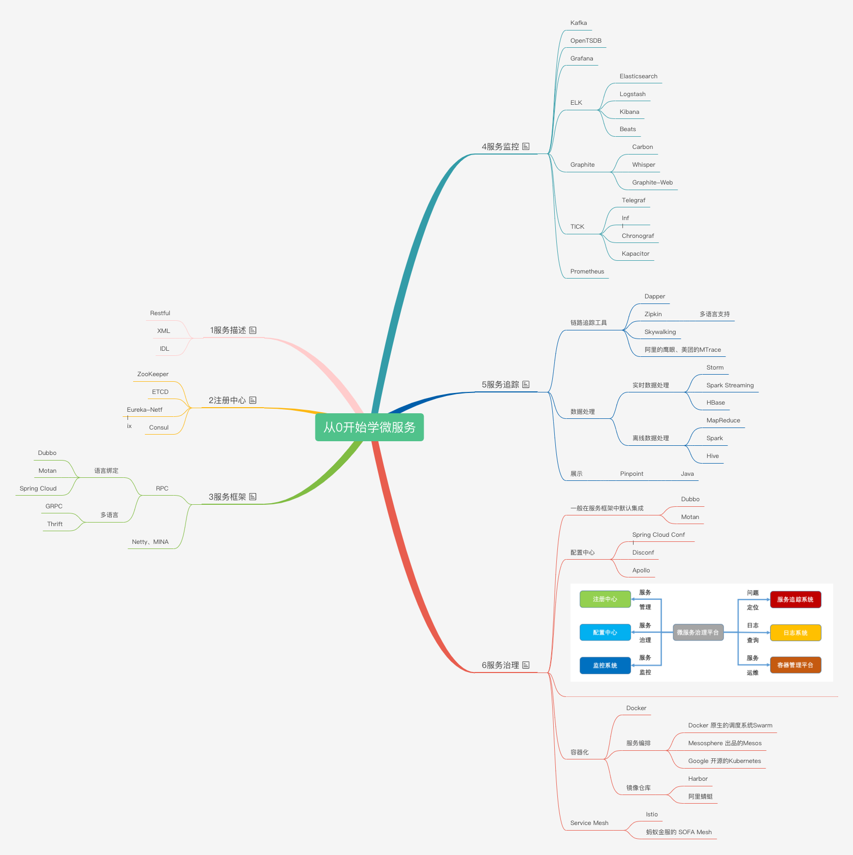 这6部分组合起来才称之为微服务。下面的链接是我做的一个思维导图,导图里面的有些内容我还没有完全学会,后期会做进一步的整理,如果大家喜欢的话,可以先记一下这个链接。