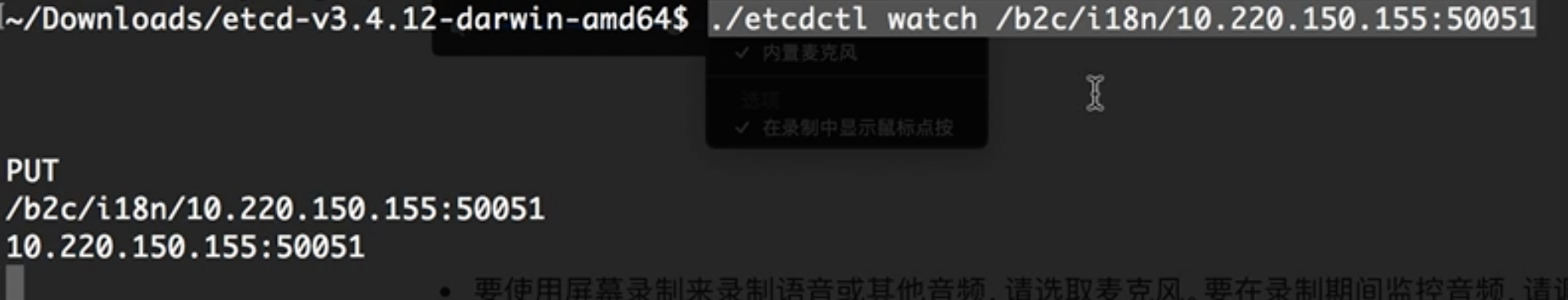 ETCD上的显示