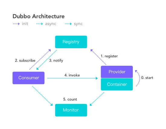 了解个节点的含义后我们再来看 Dubbo 的工作流程: