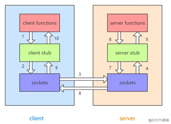 也就是说两台服务器A,B,一个应用部署在A服务器上,想要调用B服务器上应用提供的函数/方法,由于不在一个内存空间,不能直接调用,需要通过网络来表达调用的语义和传达调用的数据。
