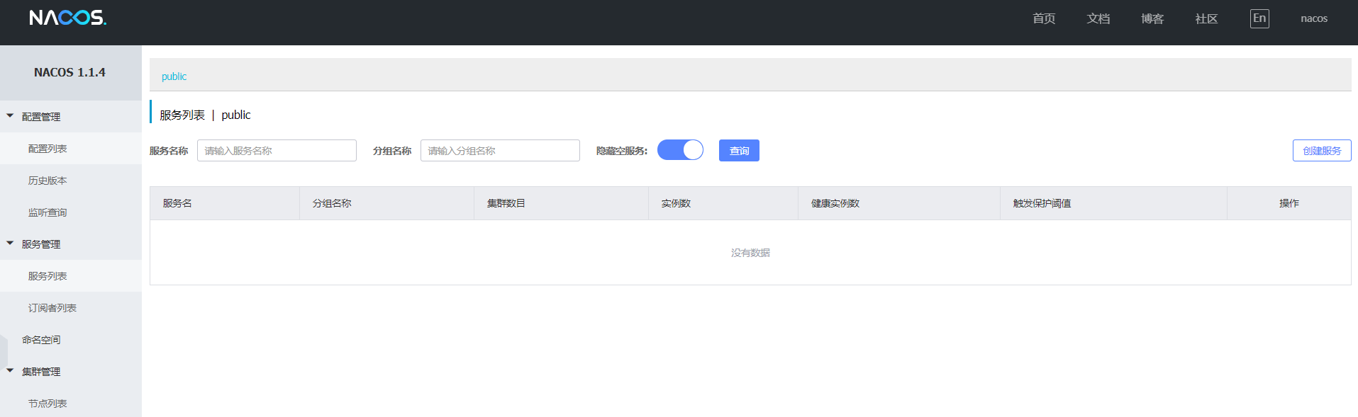 打开浏览器输入http://localhost:8848/nacos,即可访问服务, 默认密码是nacos/nacos