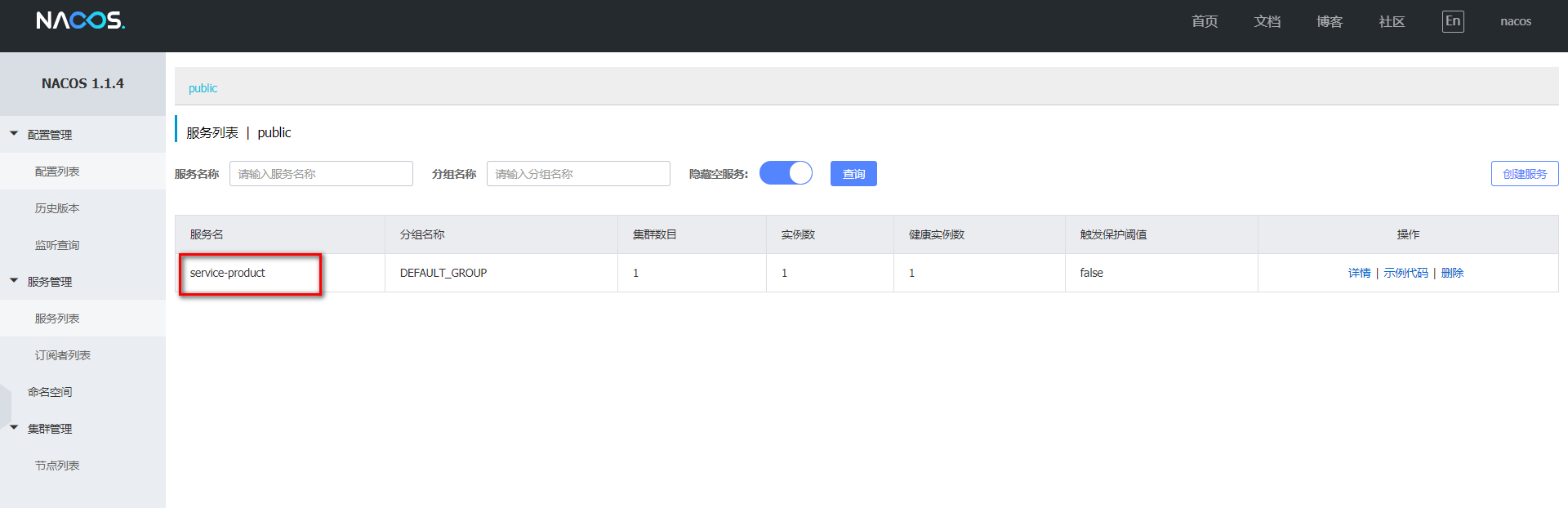 4 .启动服务, 观察nacos的控制面板中是否有注册上来的商品微服务