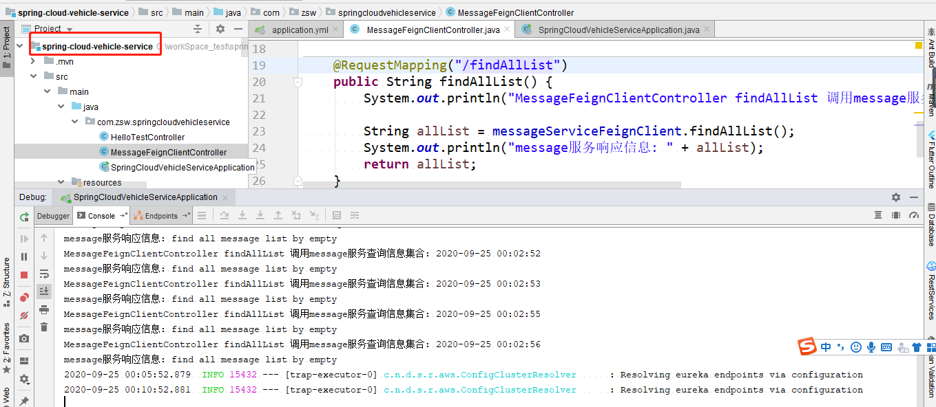 System.out.println("MessageFeignClientController findAllList 调用message服务查询信息集合: " + format.format(new Date()));
