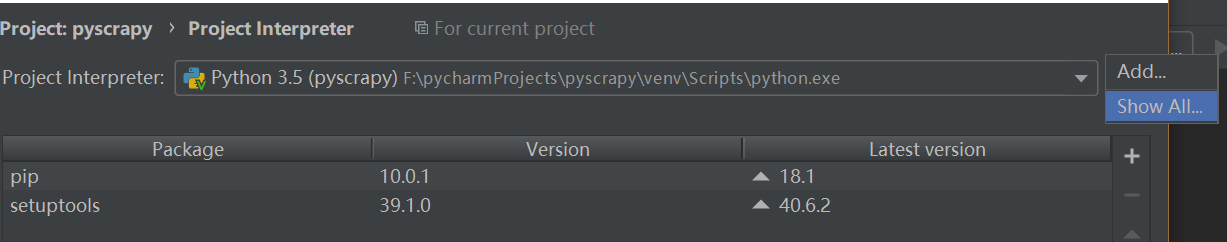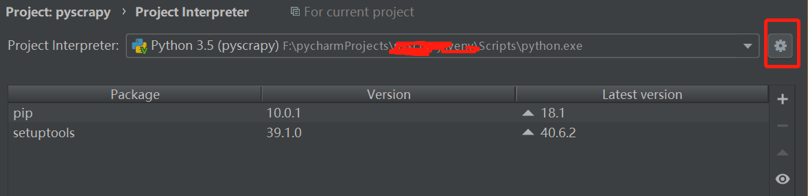 3、点击齿轮---点击Add,在出现的界面里,选Virtualenv