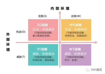 通过采用SWOT分析(见图4)、决策树分析、标杆对照等工具技术进行比较分析,可以了解市场上同类产品或项目的特点,找到新的需求点,并从中发掘新的机遇,以此创造更具有竞争力和创新性的产品或项目。
