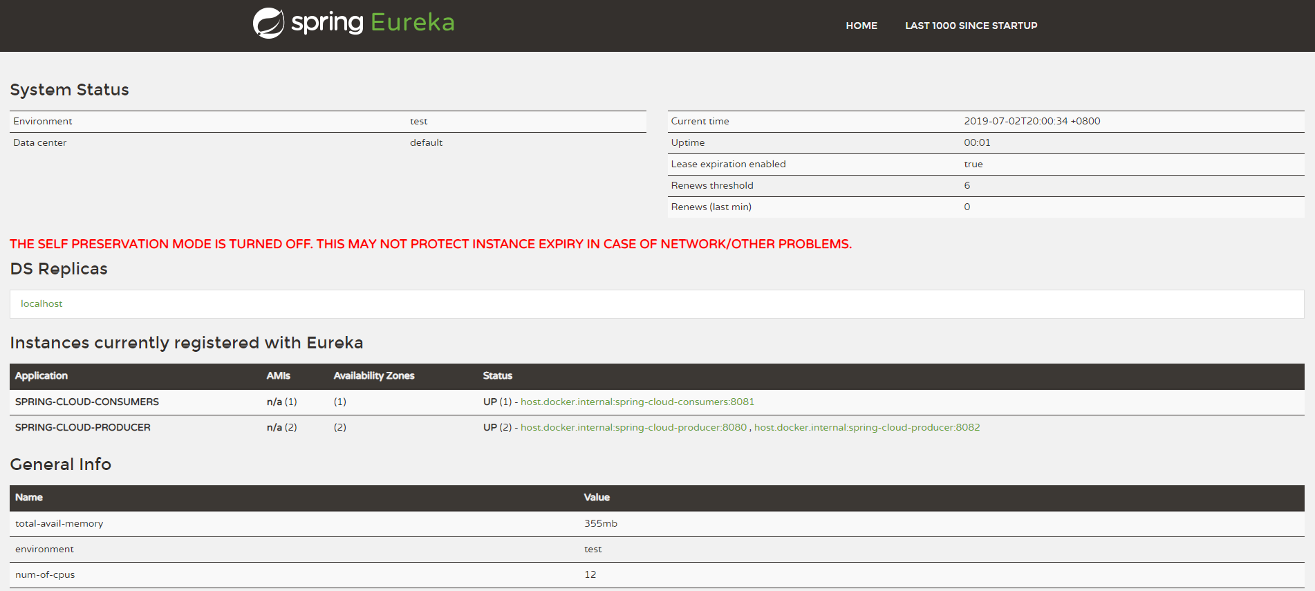 启动我们刚复制好的producer2,这时可以看一下注册中心Eureka,我们现在已经有两个producer服务了。