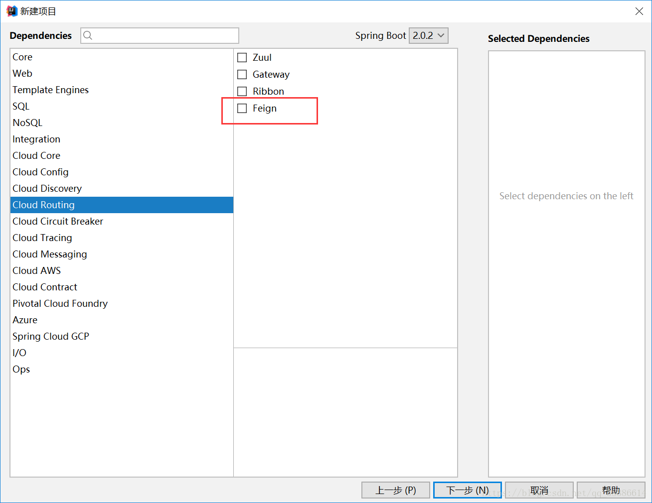 Idea右键添加项目,和创建Eureka项目类型,最后选择Feign 如下图