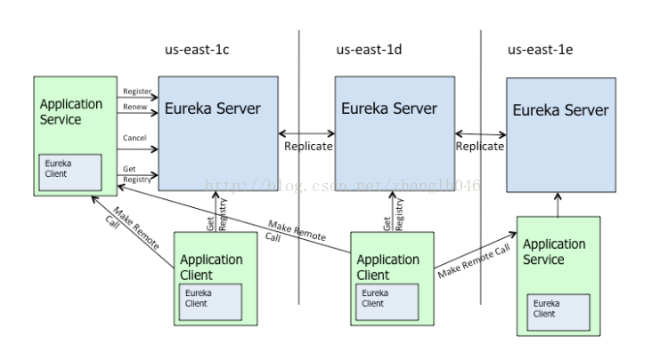 # 注册信息和更新会被复制到其他Eureka 节点,来自任何区域的客户端科可以查找到注册中心信息,每30s发生一次复制来定位他们的服务,并进行远程调用