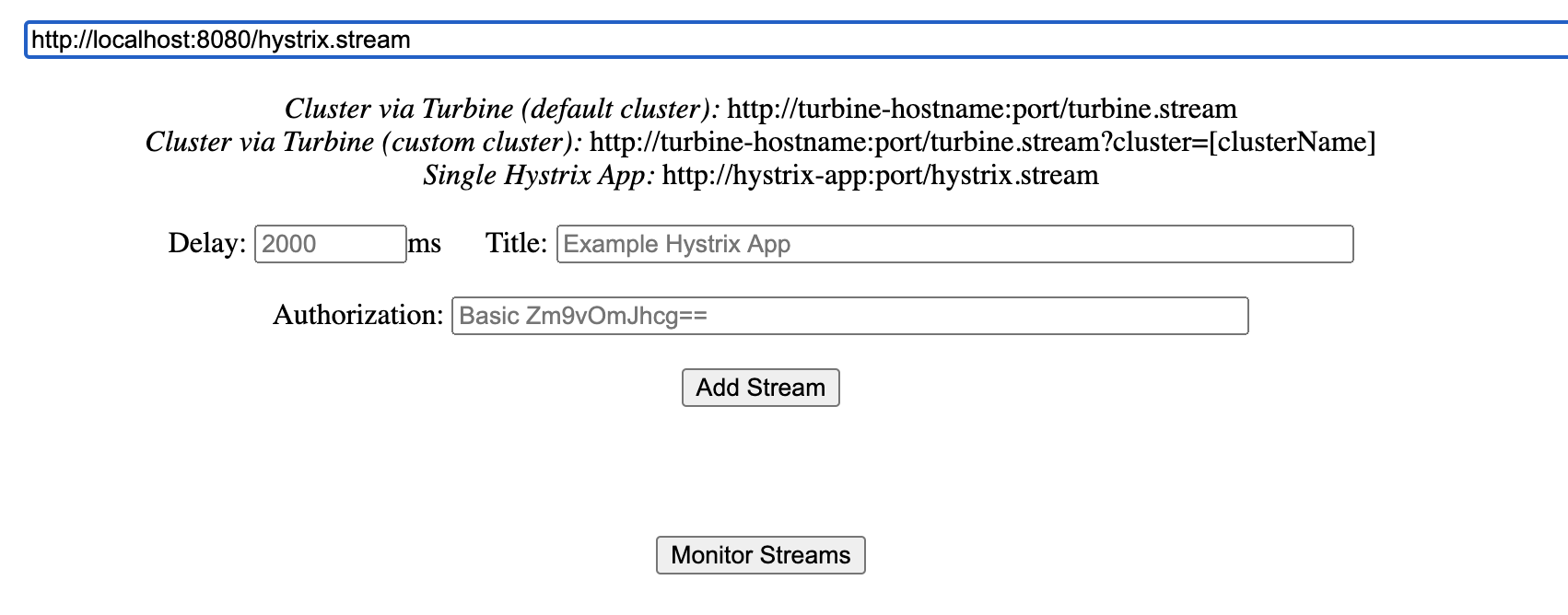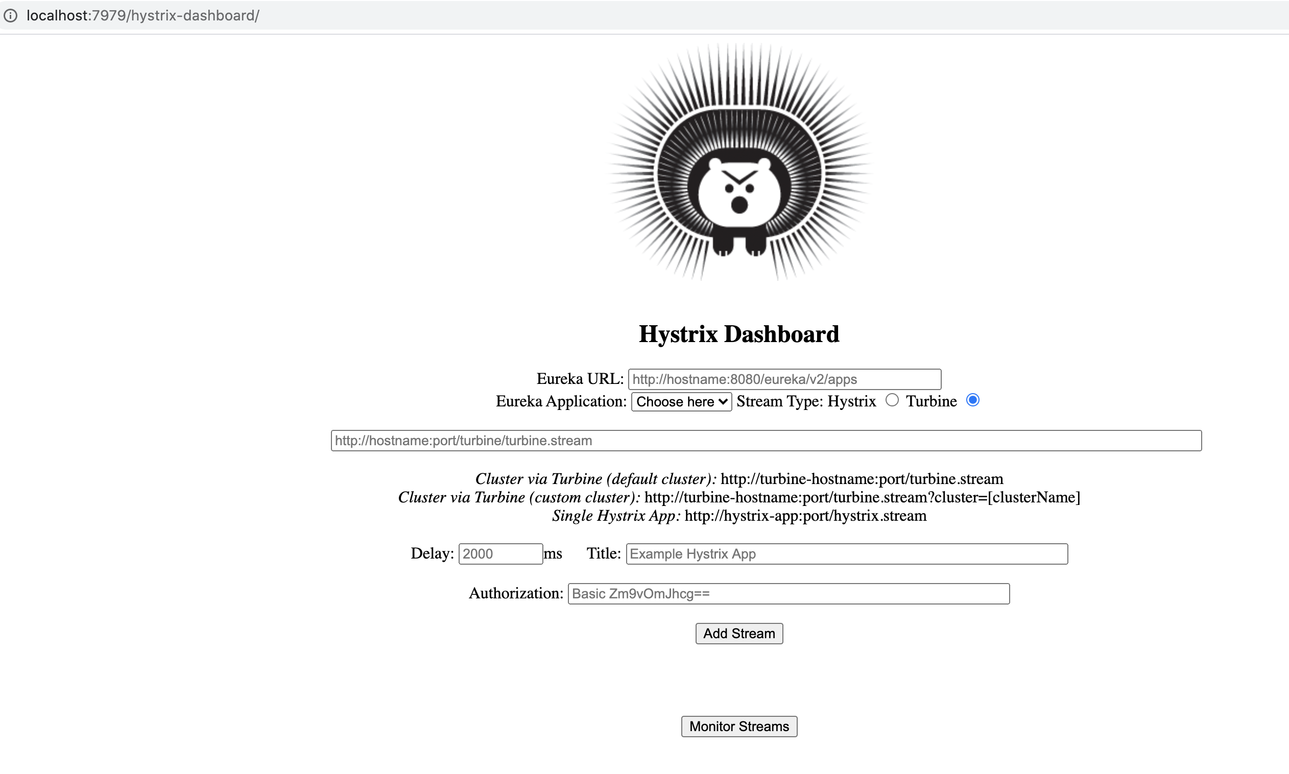 本地启动: nohup java -jar -DserverPort=7979 -DbindAddress=localhost standalone-hystrix-dashboard-1.5.6-all.jar &