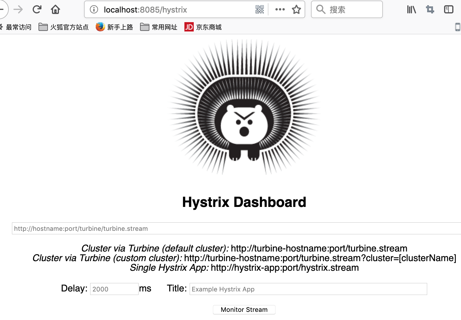 运行后,假设开的端口为8085,应用名称为hystrix-dashboard