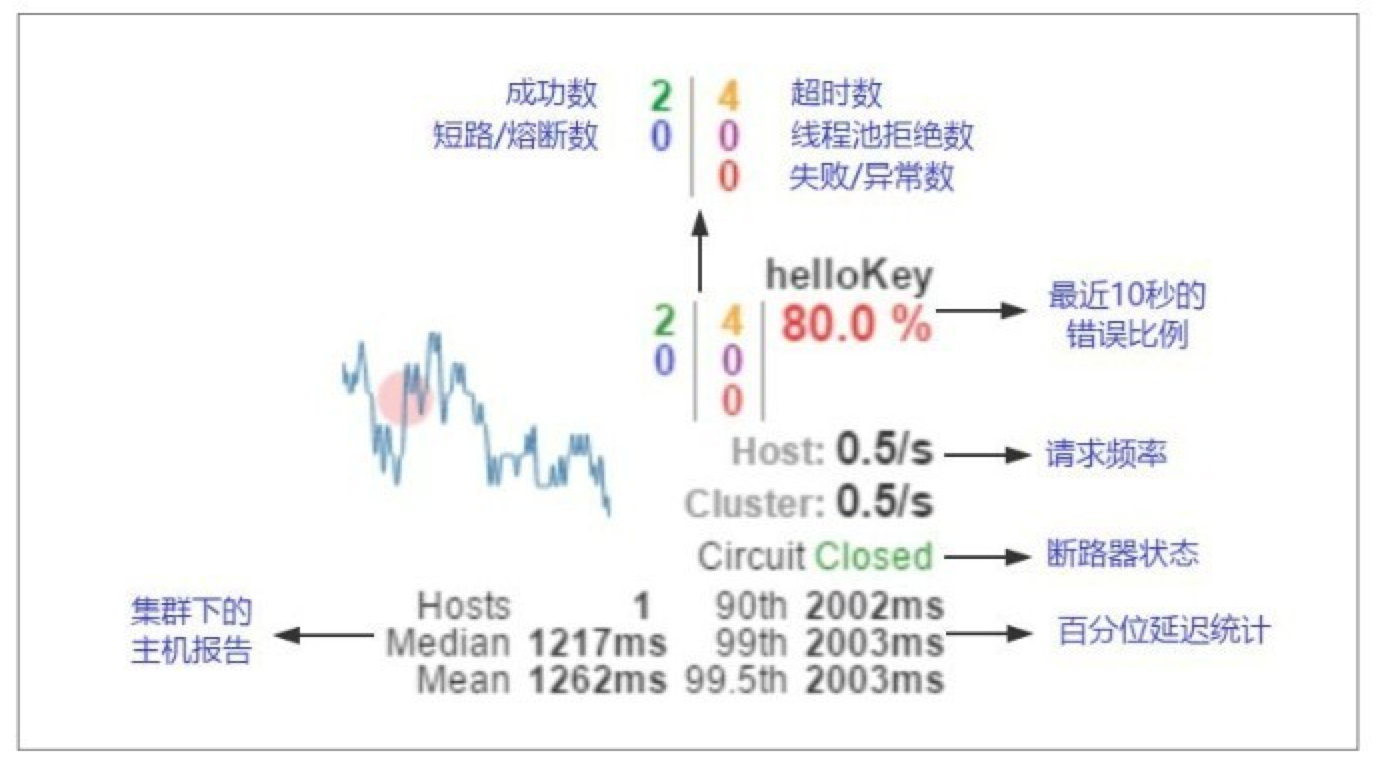 其中,getHello下面的百分比是最近10秒的错误率,比如,连续调用10次;