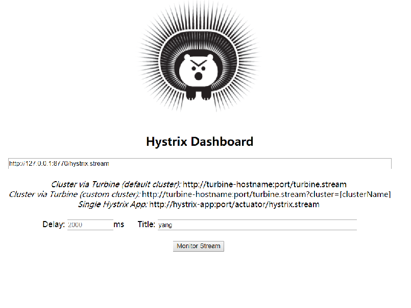 在浏览器上访问http://127.0.0.1:8770/hystrix,浏览器显示的界面如下图所示: