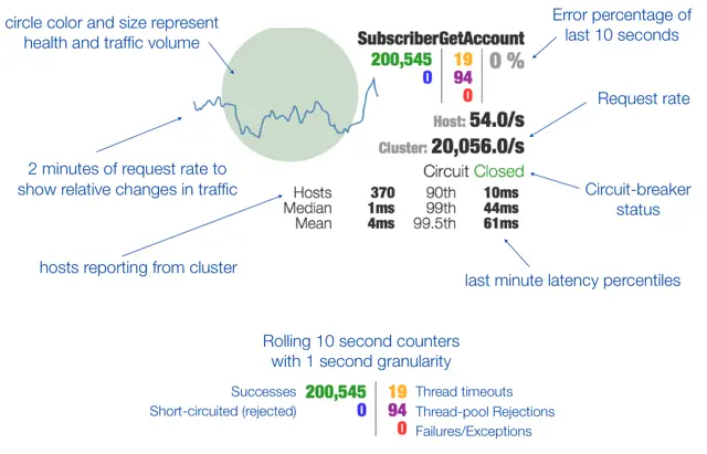 data: {"type":"HystrixCommand","name":"command名字","group":"RibbonService","currentTime":1553412299390,"isCircuitBreakerOpen":false,"errorPercentage":0,"errorCount":0,"requestCount":0,"rollingCountBadRequests":0,"rollingCountCollapsedRequests":0,"rollingCountEmit":0,"rollingCountExceptionsThrown":0,"rollingCountFailure":0,"rollingCountFallbackEmit":0,"rollingCountFallbackFailure":0,"rollingCountFallbackMissing":0,"rollingCountFallbackRejection":0,"rollingCountFallbackSuccess":0,"rollingCountResponsesFromCache":0,"rollingCountSemaphoreRejected":0,"rollingCountShortCircuited":0,"rollingCountSuccess":0,"rollingCountThreadPoolRejected":0,"rollingCountTimeout":0,"currentConcurrentExecutionCount":0,"rollingMaxConcurrentExecutionCount":0,"latencyExecute_mean":0,"latencyExecute":{"0":0,"25":0,"50":0,"75":0,"90":0,"95":0,"99":0,"99.5":0,"100":0},"latencyTotal_mean":0,"latencyTotal":{"0":0,"25":0,"50":0,"75":0,"90":0,"95":0,"99":0,"99.5":0,"100":0},"propertyValue_circuitBreakerRequestVolumeThreshold":20,"propertyValue_circuitBreakerSleepWindowInMilliseconds":5000,"propertyValue_circuitBreakerErrorThresholdPercentage":50,"propertyValue_circuitBreakerForceOpen":false,"propertyValue_circuitBreakerForceClosed":false,"propertyValue_circuitBreakerEnabled":true,"propertyValue_executionIsolationStrategy":"THREAD","propertyValue_executionIsolationThreadTimeoutInMilliseconds":1000,"propertyValue_executionTimeoutInMilliseconds":1000,"propertyValue_executionIsolationThreadInterruptOnTimeout":true,"propertyValue_executionIsolationThreadPoolKeyOverride":null,"propertyValue_executionIsolationSemaphoreMaxConcurrentRequests":10,"propertyValue_fallbackIsolationSemaphoreMaxConcurrentRequests":10,"propertyValue_metricsRollingStatisticalWindowInMilliseconds":10000,"propertyValue_requestCacheEnabled":true,"propertyValue_requestLogEnabled":true,"reportingHosts":1,"threadPool":"RibbonService"}